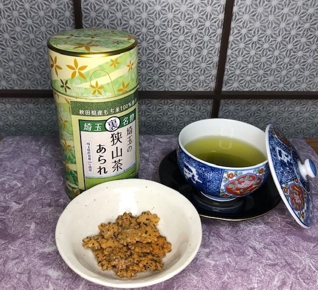 日本三大銘茶の一つ、狭山茶を使用した小粒せんべいのセット。